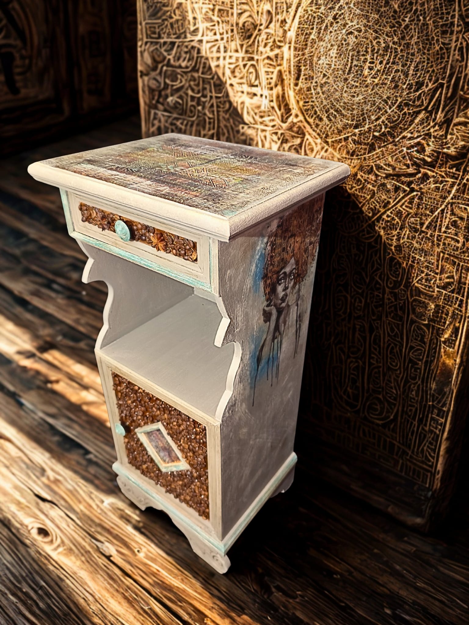 Inspirat de bogăția vizuală a culturii africane și de aromele profunde ale cafelei etiopiene, Ethiopian Latte este o piesă de mobilier artizanală transformată manual într-un obiect de decor cu suflet.